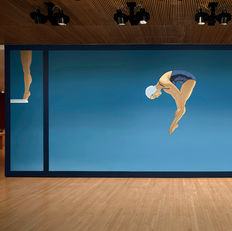 Jenifer's work has been prominently featured at the SFMOMA, including her recent mural "VMD" (2024), which is part of the museum's "Bay Area Walls" series and celebrates Filipina American Olympic gold medalist Victoria Manalo Draves.