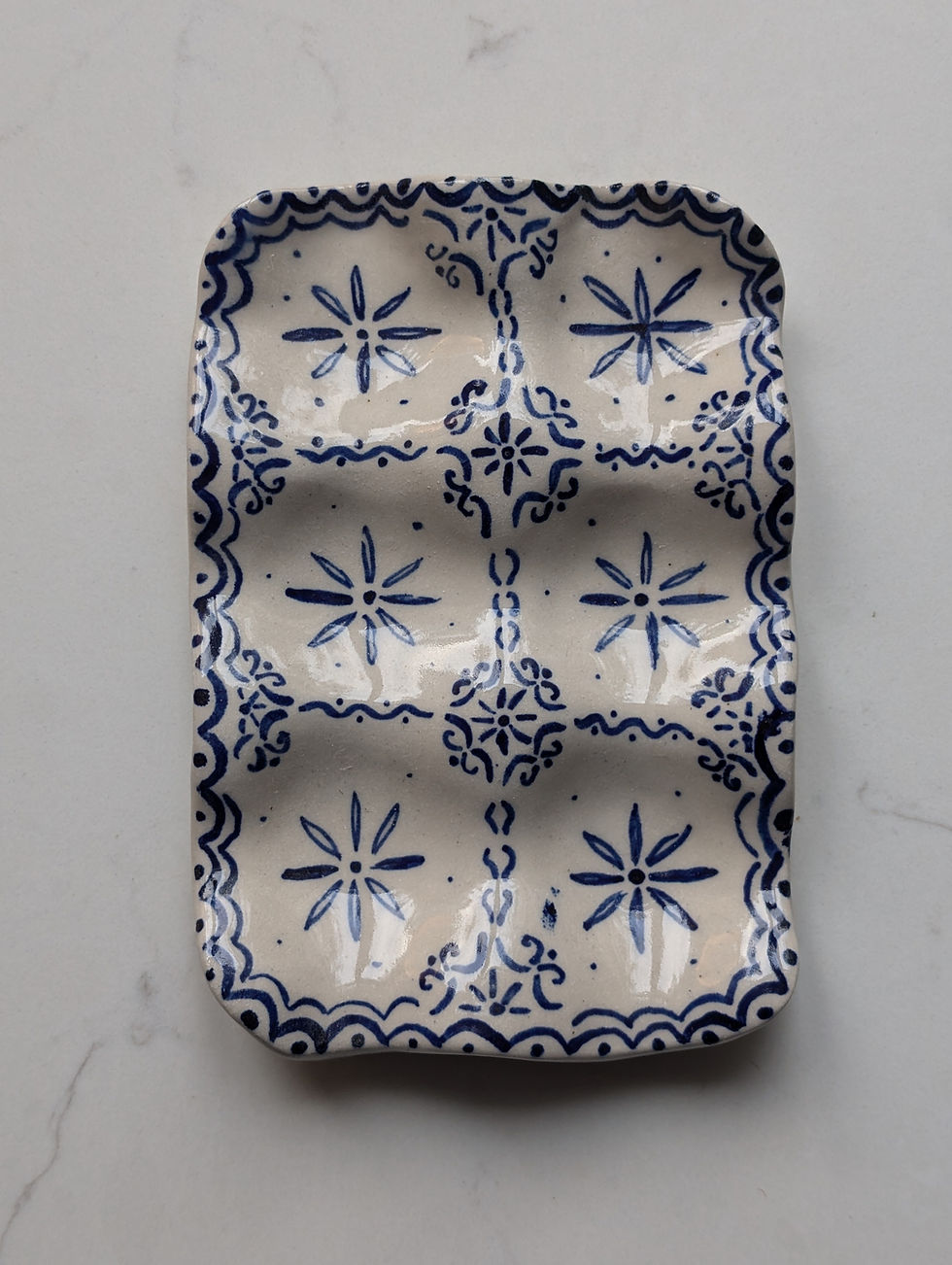 Being a big fan of the Netherlands, Laura is heavily influenced by the tradition of Delftware pottery. This decorative pottery style is a true emblem of Dutch heritage and boasts a rich history that stretches back over four centuries. Laura's ceramic pieces reflect this tradition with their classic cobalt blue and white colourway and their ornate decoration celebrating the flora and fauna of the British countryside that she experiences when out walking or riding her bike. Her ceramic work is also reminiscent of the blue and white of Chinese willow pattern pottery.
