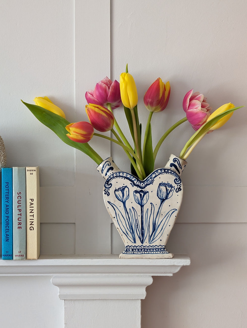 As well as her illustrative work, Laura has trained as a ceramicist and her style has developed into a recognisable body of work. Working from her studio space in Norwich, she uses a slab building technique to create pieces ranging from tiles, to bowls to impressive tulipieres. Laura then uses cobalt blue powder to add intricate decoration in her inimitable illustrative style.